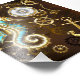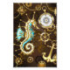 Fundo de madeira castanho com fundo marinho, cordilheira mecânica, volante antigo, âncora de ouro e diversas engrenagens de ouro e latão. Estilo Steampunk.