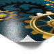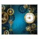 Turquesa, texturizada, fundo steampunk com latão e engrenagens douradas, chave prateada e relógio. Estilo Steampunk.