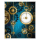 Turquesa, texturizada, fundo steampunk com latão e engrenagens douradas, chave prateada e relógio. Estilo Steampunk.
