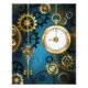 Turquesa, texturizada, fundo steampunk com latão e engrenagens douradas, chave prateada e relógio. Estilo Steampunk.