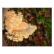 Esta impressão de fotografia apresenta o cogumelo delicioso e comestível "frango da floresta".