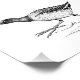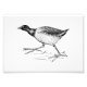 Uma ilustração escura e escura de uma ave galinheira, bem detalhada e branca, sobre o chão.