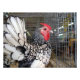 Foto Galo Preto e Branco com Cauda Mostrada na Gaiola