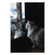 Gatinho branco de neve fofo sentado à porta assistindo a neve se empilhando e vislumbrando seu próprio reflexo. Esta cara carinhosa chama-se "Klondike". Fotografado por Black Brook Photoographic, dezembro de 2013.