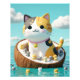 Traga alegria e gentileza para o seu espaço com este trabalho de arte de gato kawaii calico! Esta design de fantasia 3D apresenta um gato feliz sentado dentro a um barco de coco, rodeado por pequenos gatinhos num brilhante oceano azul. Perfeito para amantes de gatos, quartos de crianças, berçários, ou qualquer pessoa que goste de arte de parede branca e kawaii. Impresso em papel de poster de alta qualidade, este trabalho de arte faz um presente adorável para aniversários, aquecimento doméstico, ou simplesmente para iluminar sua decoração doméstica.