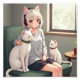 uma garota com fones de ouvido sentada ao lado de um gato branco e um gato branco sentado ao lado, Miho Hirano, arte peluda