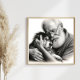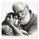 Uma ilustração escura e esbranquiçada que mostra um respeitável homem idoso segurando seu filhote de "Border Collie". O trabalho a lápis hiperrealista captura cada ruga, uísque e fio de pelo, enfatizando a relação protetora e amorosa entre o senhor envelhecido e seu jovem amigo canino. Esta peça encantadora celebra o vínculo de eterno entre os humanos e seus familiares de quatro patas.