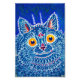 Foto Impressão com a pintura de um gato em estilo gótico de Louis Wain (1860-1939). Um gato azul psíquico olha amigavelmente com os olhos amarelos para o espectador. Um presente maravilhoso para amantes de gatos e arte inglesa.