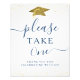 Graduação Por Favor, Tome Um Favor Assinando Um Boné Dourado. Aconselhem os convidados de festas de formatura a TIRAR UM de seus favoritos para festas com este sinal 8x10 com um boné de formatura falsa de brilho dourado e um pequeno confete de estrelas com tipografia de script de caligrafia de rico na sua escolha de cor (mostrado em azul). ASSISTÊNCIA: para obter ajuda com a modificação ou personalização do design, transferir o design para outro produto ou, se você quiser coordenar itens, entre em contato com o designer ANTES DE ENCOMENDAR através da guia MENSAGEM de Bate-papo Zazzle ou envie um email para makeitaboutyoustore@gmail.com.