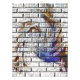 Um design de grafite de arte digital em uma parede branca de tijolos.