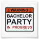 Aviso, Festa de Bachelor em Andamento! Aconselha-se precaução, bebendo e outras atividades possíveis para adultos. Mantenha esta placa na frente da festa, pois não há volta!