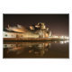 Fotografia do Museu Guggenheim Bilbao, projetada pelo arquiteto norte-americano Frank O. Gehry, tiro noturno com reflexão.