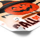 Chamada de Halloween de design espiritual, esta design é perfeita para qualquer um a qualquer momento e não apenas para o Halloween, com este atraente trabalho de arte com duas abóboras assustadoras, com um machado de punhal e um fantasma.