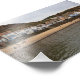A Quiet Moment in a Historic Fishing Village This high-resolution photograph captures the charming waterfront of Staithes, North Yorkshire. The scene highlights the village’s unique architecture, with colourful cottages built directly into the hillside overlooking a small, sheltered sandy beach. Visitors and families are seen enjoying the shoreline at low tide, framed by the rugged coastal cliffs and the calm waters of the harbour. It is a perfect representation of the peaceful, slow-paced atmosphere found along the Cleveland Way.