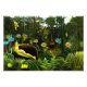Henri Rousseau O impressão do Sonho. Pintura a óleo na canvas desde 1910. A pintura mais famosa da selva de Henri Rousseau, O Sonho é uma obra vibrante que representa o amor adolescente de Rousseau Yadwigha deitado sobre um divã no meio da selva rodeado por grandes flores azuis e vermelhas do lotus. Um cobra toca flauta, e macacos, pássaros, leões, cobras e elefantes respondem calmamente a sua melodia. Fruta pendura nos ramos das árvores verdes escuras acima. Um belo presente para fãs de Henri Rousseau, as pinturas da selva, o impressionismo poste e a arte francesa.