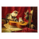 Foto Impressão com Henriëtte Ronner-Knip, em Fazer de pintura a óleo, Música (1900). Uma gata-mãe olha enquanto seus dois gatinhos brincam com uma guitarra enquanto um outro gatinho prende uma cortina vermelha, e outro gatinho se esconde atrás de livros. Um presente maravilhoso para amantes de gatos e entusiastas do Romantismo.