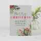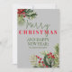 Foto Holly e Placa de Natal da Cinza Pine Red Berries com um belo spray de bagas ocas, vermelhas e pinheiro no convite de festas para uma festa festiva de Férias.