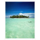Fotoimpressão de retrato de uma ilha desértica ou de uma aventura desabitada com palmeiras e um céu azul escuro na água turquesa de uma lagoa no arquipélago pacífico Polinésia Francesa.
