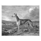 Uma ilustração a preto e branco ou um cão de galinha que se encontra orgulhosamente num campo. Esta ilustração vítrea é desenhada lindamente em preto e branco, com excelente de textura e detalhe no cão, na grama e nas nuvens no fundo.