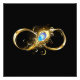 Símbolo Dourado e brilhante do infinito, decorado com pena de joalharia de pavão com turquesa sobre fundo preto.