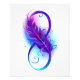 Símbolo infinito com uma bela pena pintada em cores roxas e azuis brilhantes sobre fundo branco.