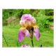 Feche uma íris roxa e roxa com barba mostrando a barba amarela
