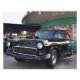 Chevy de 1950, belo acabamento preto brilhante com jantes de estoque. Os adolescentes desta era frequentemente mostravam suas varas de rua em frente aos seus pendurados favoritos. Auto por Ave.