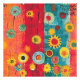 Experimente a alegria e vibração do 'Jardim Radiante', um trabalho de arte colorido e caprichoso que captura a essência da beleza da natureza. Esta peça apresenta uma composição animada com cores ousadas e contrastantes — vermelhos, azuis, amarelos e verdes — que criam uma atmosfera dinâmica e alegre. O motif central exibe uma variedade de flores estilizadas, incluindo girassóis e abstrato, suspensas por cordas contra fundo texturizado. O arranjo lúdico e os detalhes intrincados evocam uma sensação de maravilha e criatividade, fazer esse trabalho de arte perfeito para aqueles que buscam trazer uma explosão de energia e positividade para seus espaços de vida.