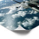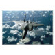 Excelente foto de um jato de caça no céu. Captura de excelentes com lindas nuvens e ilhas visíveis no chão.