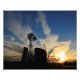 Uma fotografia de um Colorir Sunset do Kansas com Nuvens e uma silhueta de Windmill e Sun Ray. Este é ao norte de Hutchinson Kansas USA, no país. Isso é em um Poster Impressão.