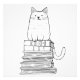 Se você gosta de gatos e livros, esta design será perfeita para você. Apresenta um gato sentado em livros.