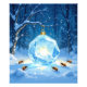 Ein funkelnder Apfel aus reinem Kristall liegt eingebettet im weichen Schnee. Um ihn herum tanzen leuchtende Glühwürmchen, die mit ihrem warmen Licht das frostige Blau durchbrechen. Ein magisches Zusammenspiel aus Kälte und Licht, Natur und Fantasie – wie ein Schatz aus einer anderen Welt.