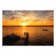 Dois pescadores gostam de pescar cedo, juntamente com um ouro de sol espetacular sobre o lago Seneca, Nova Iorque, com nuvens dramáticas, banheiros e docas. Foto ©Liz Van Steenburgh