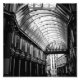 Imagem a preto e branco de Leadenhall Market London, O mercado foi construído em 1881 e é famoso na sua cidade de londres