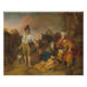 O ultraje de Gibeah (Juízes 19 Vendidos) — 1 Um Levita de Ephraim viajou com sua concubina para Belém em Judah para levá-la de volta para casa. — 2 Ficaram em Belém por vários dias, aproveitando a hospitalidade do pai da mulher. Mas quando era hora de partir, o Levite pediu para sua concubina se afastar. — 3 "Venha", ele disse, "o vamos vai indo." — 4 Ela, no entanto, recusou. "Não", ela disse, "vamos fica mais uma noite. Meu pai gosta de sua companhia." — 5 A Levita pressionou, insistindo que eles saíssem à noite. Chegaram a Jebus, como Jerusalém era então chamada, quando o sol começou a se pôr. — 6 Ainda ansiosos para chegar em casa antes do anoitecer, Levite sugeriu que descansassem lá pela noite. — 7 Mas seu servo argumentou, "Não podemos ficar nessa cidade estrangeira. O vamos vai para Gibeah, um pouco mais longe." — 8 Então eles viajaram e chegaram a Gibeah no território de Benjamin quando o anoitecer se instalou. — 9 Não encontrando ninguém para oferecer alojamento, eles ficaram na praça da cidade. Finalmente, um velho das colinas de Ephraim, que ficava em Gibeah, os viu e os convidou para sua casa. —10 Os Levitas aceitaram com prazer e seguiram o velho até sua casa, onde lavou os pés, lhes deu uma refeição e lhes ofereceu um lugar para dormir. — 11 À medida que a noite se aprofundava, um grupo de homens vil de Gibeah cercava a casa, batendo na porta e gritando para o velho. — 12 "Traga o homem que veio para ficar com você", eles exigiram. "Queremos tê-lo." — 13 Horrorizado, o velho pediu-lhes, "Não, meus amigos, não façam tal coisa de mau! Ele está debaixo do meu telhado. Não cometa um ato tão vergonhoso!" — 14 Mas os homens não escutavam. Em desespero, o velho ofereceu a sua própria filha virgem e a concubina de Levite a eles, dizendo, "Faça o que você precisa com eles, mas deixe esses homens em paz, porque eles estão sob minha proteção." — 15 Consumidos pela luxúria, os homens ignoraram as súplicas do velho. Pegaram a concubina e a arrastaram para fora, agredindo-a até a noite toda. — 16 Ao amanhecer, completamente quebrada, a concubina tropeçou de volta à porta da casa e desabou. — 17 Quando o rosa Levita de manhã viu sua concubina deitada na porta, com as mãos ainda no limiar, pensou que ela estava apenas dormindo. — 18 "Levante-se", ele disse, "é hora de ir." Mas não houve resposta. Ele percebeu com um punhado de horror que ela era morto. — 19 Ele colocou seu corpo em seu burro e partiu para casa, seu coração pesado de dor e raiva. — 20 Chegando em sua casa, cortou o corpo de sua concubina em doze pedaços e os enviou pela terra de Israel, junto com uma mensagem: "Olha o que foi feito com a minha concubina! Tal indignação nunca foi vista em Israel!" — Esta obra está no dominio público em seu país de origem e em outros países e áreas onde o termo de direito autoral é a vida do autor mais 100 anos ou menos. — Gerbrand van den Eeckhout (1621-1674), artista holandês da idade do Ouro, foi um aluno estrelado de Rembrandt. Ele dominou pinturas de história, retratos e cenas de gênero, conhecidos por sua mistura de drama de Rembrandt com elegância flamenga. Seu "Levite e sua Concubina" é um exemplo famoso
