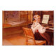 Vintage pintando uma garotinha tocando piano ereto com sua partitura Mozart na frente dela. Trabalho de arte do artista sueco Carl Larsson.