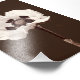 A arte apresenta uma elegante papoila oriental branca de neve com centro castanho escuro contra um fundo cor de café rico. Arte original do Featherfall Studio.