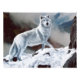 Lobo-ártico branco em uma montanha negra. Composto com o Photoshop cc Alaska é onde vive a maioria dos lobos árcticos selvagens. Eles são capazes de caminhar no chão congelado devido à maneira como seus pés são projetados. Isso permite-lhes mudar de peso e manter uma boa aderência. Não só podem suportar as temperaturas muito frias, como não parecem se importar com a parte do ano em que está escuro tanto dia como noite.
