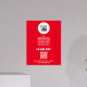 Este design apresenta um sinal comercial de código QR, com um horário de abertura simples, em vermelho e branco, com um minimalista moderno, adicione o seu logotipo, digitalize-me, um simples sinal mínimo e personalizado, cartazes de negócios