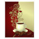 Um design moderno e profissional com uma xícara de café e grãos de café em um fundo na moda vermelho e dourado com rolhas e corações. Personalize-o com seu próprio texto, se quiser. Siga o link abaixo para ver o resto da coleção de produtos Modern Coffee Lover.