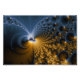 Uma incrível peça de arte fractal. A quantidade de detalhes é impressionante. miniaturas e espirais por toda a imagem. O fractal tem um brilho de ouro combinado com partes azuis mais escuras. O fractal é um zoom "original" do fractal de Mandelbrot, não foram feitos filtros ou processamento postado.