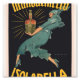 Poster de publicidade para licor mostrando uma mulher segurando uma garrafa do licor.
