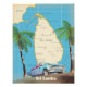 Mapa ilustrado do Sri Lanka (além das ilhas circundantes) em um belo estilo vintage detalhado, decorado com um velho automóvel.