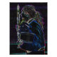 Fotografia alterada para abstrato brilhante de perfil de uma banda marchante feminina uniforme, segurando seu chapéu de penas em uma mão e um clarinete na outra.