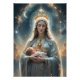 Imagem (gerada por um software de inteligência artificial) da Virgem Maria segurando a Criança Jesus cercado pela lua e pelas estrelas; do outro lado, as palavras da Ave Maria em inglês e novamente em latim. Um clássico — comprar para manter no seu livro de orações ou no seu vestiário (ajustado um quadro padrão de 5 x 7 polegadas) ou comprar para compartilhar com amigos.