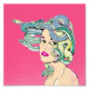 Uma ilustração de Medusa, a deusa da mitologia grega antiga. Ela tem cobras coloridas para cabelo.