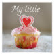 Um cupcake de coração bonito com "Meu pequeno (cupcake)", impressão de foto bonito para o dia mais doce para o compro de cupcakes.