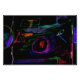 Emerging from a deep, black void, vibrant neon hues of purple, red, green, and yellow create a striking visual contrast. The swirling circular motifs and energetic strokes give the impression of glowing lights in a nocturnal cityscape. This dramatic, high-contrast piece is a fantastic fit for statement wall art, striking tech accessories, and bold graphic tees.