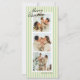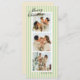 Pequenas faixas verticais verdes e creme de menta dão a este cartão de três fotos uma vibração moderna e chic com fontes clássicas e uma mensagem personalizada longa para amigos e familiares.