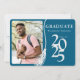 Este convite à formatura azul-marinho moderno e elegante apresenta uma foto do formando e pode ser personalizado para complementar as cores escolares ou o tema da graduação. Sacudir a placa e use as ferramentas design para atualizar com o texto. Também disponível como download digital.